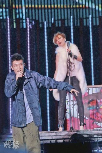 中新网10月25日电 陈冠希相隔两年半再复出舞台演唱,前晚在上海《东亚飞扬演唱会》获得歌迷热情支持,不断有人叫他的名字,欢呼声不绝。他在台上演唱两首新歌,分别与郑秀文、黄秋生及农夫合唱,不仅没有怯场,而且表现投入。