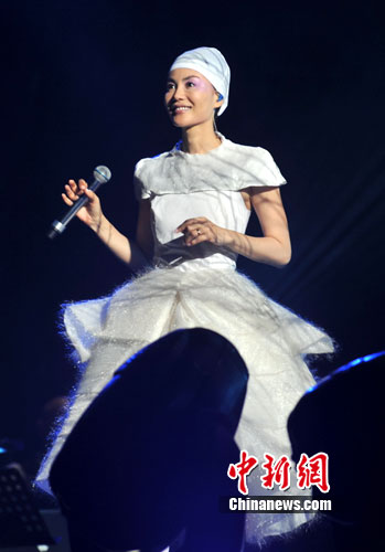 王菲北京开唱造型抢眼 雪白长袍出场(组图)(3)