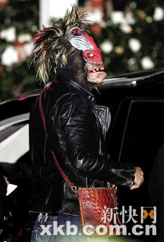 这个可怕的恶魔是谁?李奥纳多·迪卡普里奥戴着骇人面具参加了凯特·哈德森的万圣节派对,估计谁也没认出他来。