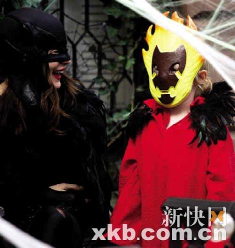 为了庆祝万圣节,丽芙·泰勒和她的儿子MiloLangdon将房子周围装扮得很有节日气氛,看起来像被蜘蛛网笼罩一样。泰勒戴着普通的黑色面具,而Langdon 的黄色面具很抢眼,颇似孙悟空造型。(新快报)