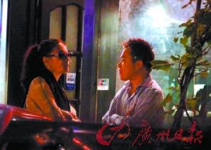 两人逛了一会儿走到路边开始聊天,从两人的表情与滔滔不绝的话题来看,应该是相熟已久的老朋友,两人不时聊得哈哈大笑,可以看到该男子笑起来有一对明显的酒窝。