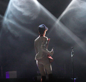 王菲在演唱会上除了身穿白色服装外,还挂了一串水晶珠帘。如果说内衬的浴袍裙装像雪花的温柔,这珠帘就像初结的冰花,展露了王菲一路蜕变的心境。