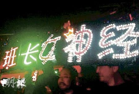 李亚鹏与“六年一班”成员化身粉丝,在演唱会场内高举“班长神经病”灯牌