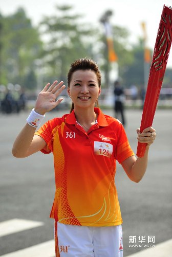 群星传递亚运火炬 章子怡秀发飘逸笑容满面(3)
