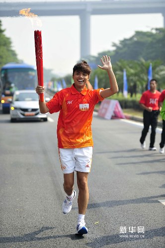 火炬手张敬轩在传递中