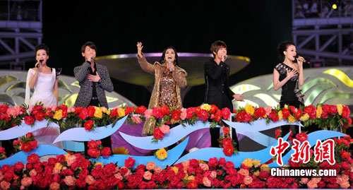 中新网11月15日电 “说着不一样的语言,拥抱一样笑脸,不远千万里,同聚在激情盛典……在那太阳升起的东方,奇迹在你身边……”昨晚,一袭典雅白裙的谭晶站在海心沙舞台中央,和韦唯、陶喆、容祖儿、金贤重一起高唱广州亚运主题曲《日出东方》,履行了她4年前在多哈亚运会闭幕式上对全世界人民的发出的邀约。