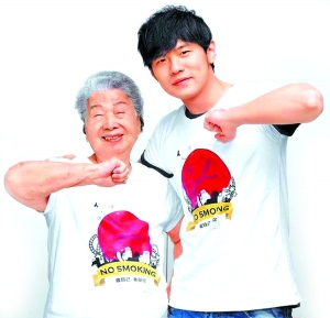 周杰伦(周董)最近忙着主持、演唱会,但也不忘做公益,日前他与87岁的外婆携手担任校园拒烟大使。献出广告处女秀的外婆骄傲地说:“杰伦不吸烟,我们家的孩子都不吸烟;希望年轻人都不要吸烟。”周董亲自指导外婆捶胸比出“我挺你”的动作,两人都分文未取。