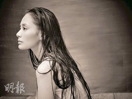 阿娇湿身素颜拍唱片封面 俏皮用头发拉椅子(2)