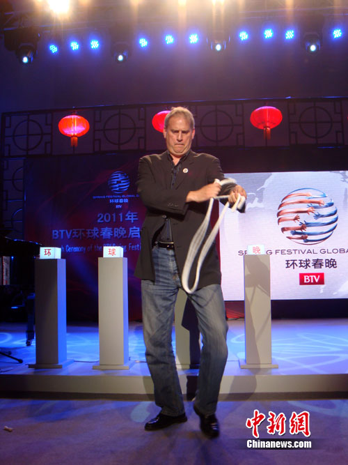 大卫表演手剪绳 摇滚钢琴天王助阵环球春晚(图)(3)