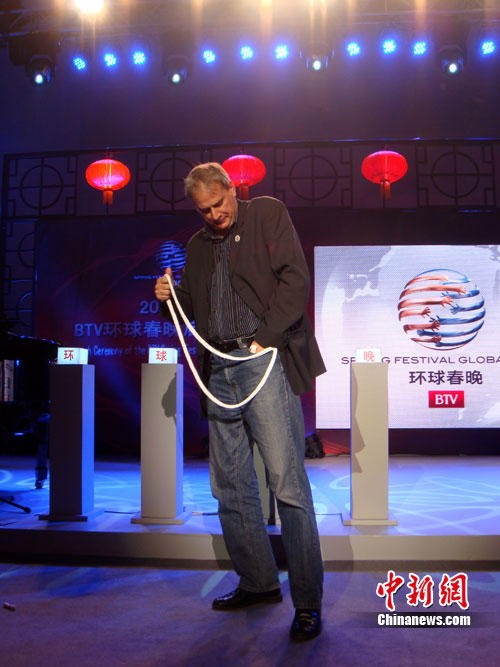 大卫表演手剪绳 摇滚钢琴天王助阵环球春晚(图)(4)