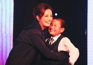 昨晚,赵薇和一名打工子弟拥抱在一起。当晚以“关爱农民工子女”为主题的“集善嘉年华”公益活动举办。本报记者 王申 摄