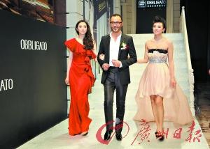 张雨绮和吴佩慈(左)陪着设计师步出。