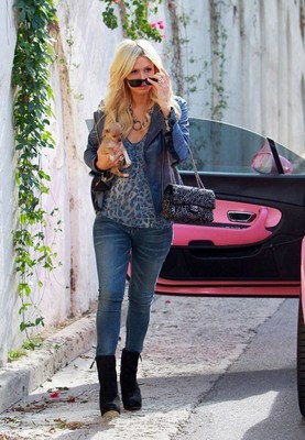 希尔顿墨镜遮面抱爱犬 提奢华旅行箱高调亮相(图)(7)