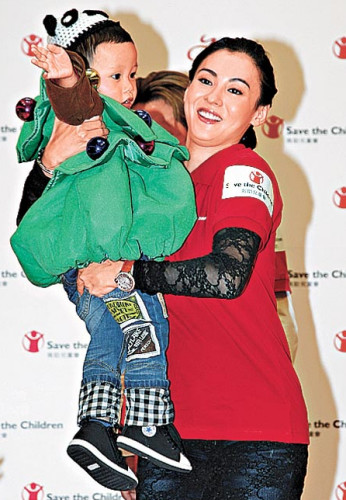 活动上张柏芝抱起小孩兼露出双下巴,母爱爆棚