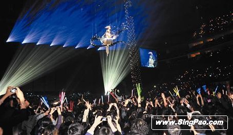 王菲上海个唱露背性感 乘飞鸟升空恐高心慌(图)(2)