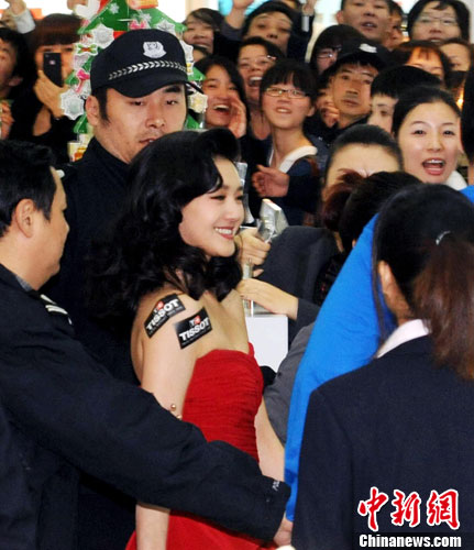 大S一袭红衣在福州一大型百货商场出席为国际名表代言活动,早早在现场等候的众多粉丝争睹这位当红女明星的风采。中新社记者 刘可耕 摄