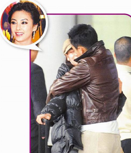 张雨绮(左)今年4月被拍到跟汪小菲在北京机场拥吻。
