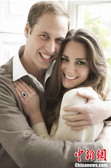 准夫妻甜蜜订婚照公布 凯特秀戒指(图)