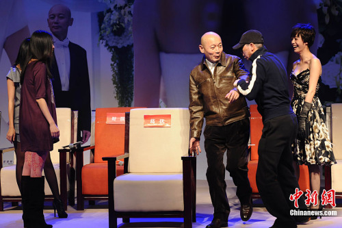冯小刚亲自安排葛优与三位美女合影。中新社记者 李学仕 摄