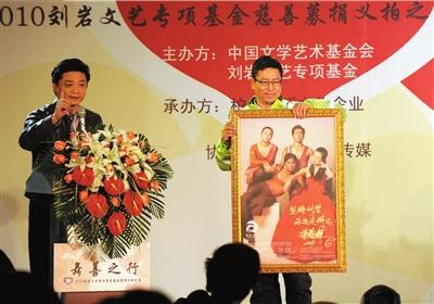 昨晚,“为梦想插上翅膀——刘岩文艺专项基金慈善拍卖会”在香格里拉饭店举行。赵本山、央视主持人朱军也捐出墨宝,导演张艺谋则捐出有他亲笔签名的珍藏版邮票。拍卖会的14件拍品共拍得626万元。本次拍卖会后,募集到的善款将全部用于扶助贫困地区孤儿的美育教育工作,同时也正式启动了刘岩文艺专项基金。