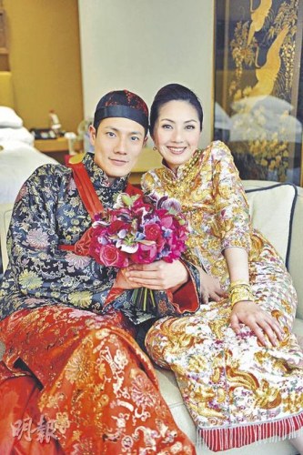 杨千嬅与丁子高一身中式礼服均为赞助,千嬅所戴的珍珠颈链与耳环超过200万元(图片来源:香港明报)
