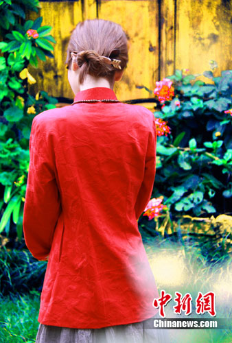 柳岩丽江红裙挽发 凸显古典韵味(组图)(6)