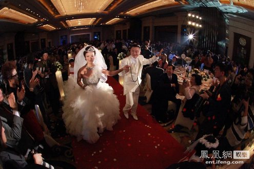 两位新人在众多亲朋好友的注视下走上幸福的红毯 图片来源:凤凰网