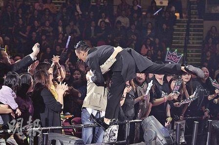 刘德华开唱秀健硕胸肌 男粉丝冲出重围求拥抱(图) (2)