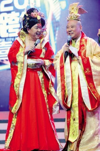 另外,这场“穿越晚会”还大打“家庭牌”,郭德纲夫妇、李菁菁夫妇、刘亚津一家、张光北一家齐上阵。郭德纲的儿子和于谦的儿子将联手演出。明星家庭也被“穿越”到白蛇与许仙、罗密欧与朱丽叶、梁山伯与祝英台、灰太狼与喜羊羊的情境之中。而德云社的众弟子除了表演《歪讲红楼》、《相新声》等相声外,张鹤伦还要挑战龚琳娜的“神曲”《忐忑》。(郑惟之)