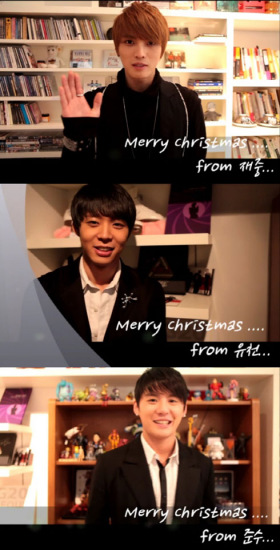他们用开玩笑的语气表达了圣诞祝福,在中说:“大家都有恋人吗?我没有,我将与其他成员一起过圣诞节。”有天说:“当大家观看该视频时,我们三个人应该在孤独中度过圣诞节。”俊秀说:“我也想好好过圣诞节,每当说出希望大家能与心爱的人一起度过愉快的圣诞节时,我都觉得自己很孤独。”