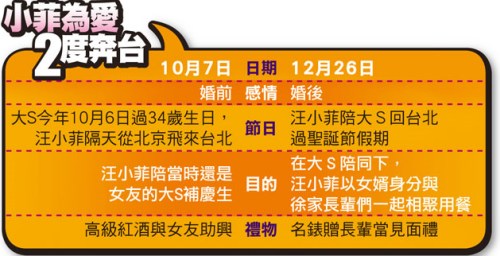 台媒整理汪小菲为爱两次赴台。(图片来源:台湾苹果日报)