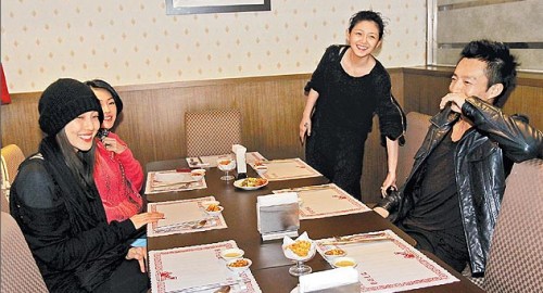 7:58pm 汪小菲(右起)、大S、小S、范范聚餐,大方受访笑得开心。