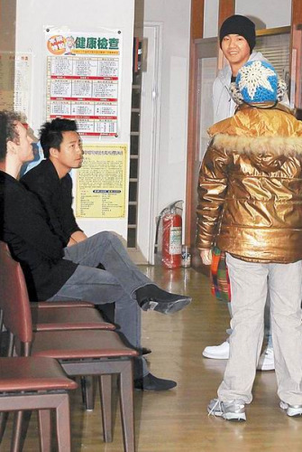 3:02pm 黑人(右二)昨带汪小菲(左二)到诊所看诊,亲切与民众寒暄。
