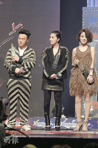 至于“新婚”的杨千嬅获大会颁发绑上红丝带的入行15周年奖项后,又获赠写上“丁子高@VRF”的2001年组合奖,这是特别补造给丁子高,因为当年VRF掉失了这个组合奖。主持叫千嬅说得奖感受时,她尴尬地说:“没话好说。”