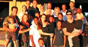 当地时间12月28日,安吉丽娜·朱莉(中)和老公布拉德·皮特(前排右一)带孩子们一行前往纳米比亚度假。他们的到来让东道主罗迪医生(前排左一)和他五岁的儿子扎切欧(前排持玩具弓箭幼童)兴奋不已,赶紧拉来摄影师,为这一时刻留影纪念。照片上朱莉抱着养女扎哈拉,皮特抱着女儿希洛,大晒幸福。