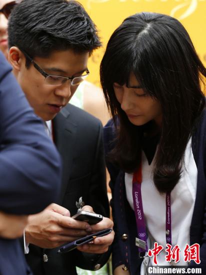 资料图:郭晶晶(右)与霍启刚一同现身伦敦,参加在2012年奥运会期间举办的深圳国际形象专场推介会。富田 摄
