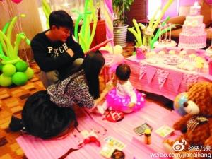 女儿今年10月满一周岁,李小璐和贾乃亮在微博发了一家三口的照片。