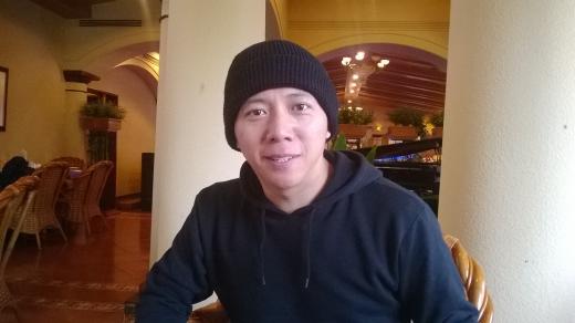 从黑线套头帽、黑色蛤蟆镜到黑色长大衣,黑色运动鞋,前日一早,海泉以这样一副“黑客”装扮出现在酒店餐厅时,很多人都没认出来,他是到长沙参加湖南卫视跨年晚会的。取好食物后,海泉坐到最靠里的位置,跟重庆晨报记者边聊边吃。