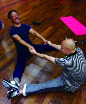 姜文、葛优玩“劈腿” 面对面坐拉手横劈叉(图)