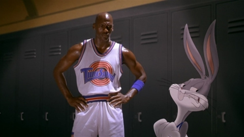 不久后,华纳公司以乔丹的这段个人真实经历为蓝本,为他度身订造了真人动画结合的电影《空中大灌篮》。在影片中,他与卡通形象兔八哥、达菲鸭并肩作战,运用出神入化的篮球技术打败了外星人,还变相致敬了自己那最标志性的飞人扣篮。极强的娱乐性与创新型,再加上乔丹无人能及的影响力,让本片饱受好评,也成为体育大腕转投电影的成功案例之一。