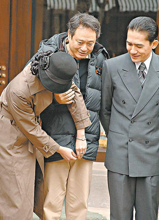 李安接受访问期间,欲拉上身穿的羽绒服拉链,站在他身旁的汤唯见状即出手帮忙,不过她拉了接近一分钟也未成功,令他状甚尴尬。