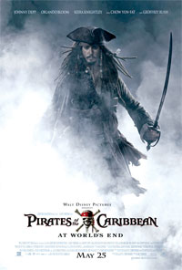 迪斯尼公司的摇钱树,电影《加勒比海盗》系列的第三部《世界末日的尽头》于近日发布了第一款正式海报。与前几款预告海报不同的是,这款海报在画面顶端打出了几位主演的名字,周润发的大名排在第四位。