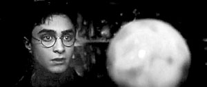哈利走过来,仰视了片刻预言球。预言球的位置却因此改变了。预言球自动从第四排架子上瞬间移动到第三排架子上,哈利不仅能够平视它,而且伸手便能拿到。