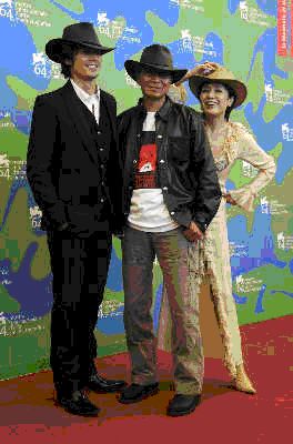 日本暴力片导演三池崇史首部英语对白影片选择向意大利式西部片致敬,而这部入围本届威尼斯电影节竞赛单元的《寿喜烧西部片》因为有好莱坞导演昆汀-塔伦蒂诺的客串出演,噱头倍增。不过在当地时间昨日下午举行的记者会上,原定出席的昆汀并未现身,导演三池崇史、演员桃井薰和伊藤英明回答了记者的提问。