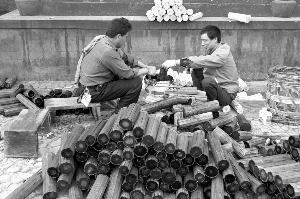 旁边两个工人正在给一些“竹简”上色做旧,他们说龙帝也将像秦始皇一样:“焚书坑儒”!旁边的书简已经制作了一大堆,虽然仅仅是要烧掉的书简,但制作非常精良,外层用竹片,里层全是圆形实木。