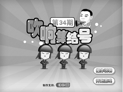 记者发现,目前有数十万网友参与过互动恶搞《集结号》,其恶搞方式就是拿冯小刚开涮,游戏称名导冯小刚携年度大片《集结号》再战内地电影市场,但当今观众的欣赏水平越来越高,要求也越来越高,导演面临的压力很大。究竟《集结号》能否吹响,请你助他一臂之力。而游戏规则就是:点击鼠标左键击毙冲上阵地的群众演员,同时注意不要打中掺杂在其中的明星演员。如果让敌人冲上阵地或是误杀一定数量的明星演员游戏即失败,参与者的任务就是,请坚守阵地直至集结号吹响。