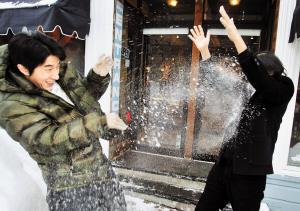 一年一度的圣丹斯电影节正在如火如荼举行中,入围世界剧情片竞赛单元的《战·鼓》主创,包括导演毕国智和主演房祖名,23日来到影展的所在地,银装素裹的美国小镇——帕克城。当地深厚的积雪,让两位大男人忍不住打起雪战,最后似乎以房祖名落败告终。