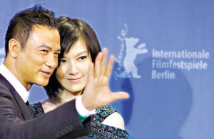 电影《文雀》的男女主角任达华和林熙蕾出席该片在柏林电影节的首映式。