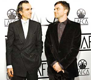 电影《血色黑金》的主演丹尼尔·戴-刘易斯(左)和导演保罗·托马斯·安德森。