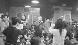 陈凯歌手举酒杯,先给全组人员深深鞠了三个躬:“这么长时间以来,大家一起经历了这个拍摄过程,没有大家齐心合力,就没有现在的杀青。作为导演,我最想说的一句话就是感谢。”一番话说得不少人都红了眼眶,而随着“朋友一生一起走,那些日子不再有”的歌声响起,剧组里不少男子汉都忍不住痛哭起来。余少群流着泪表示,没料到散组的这一天来得这么快;“硬汉”孙红雷也落下泪来:“凌晨杀青后,我一直都没睡,睡不着,我以前不知道失眠是什么滋味,这对我可从来没有过,我是真不舍得离开。”